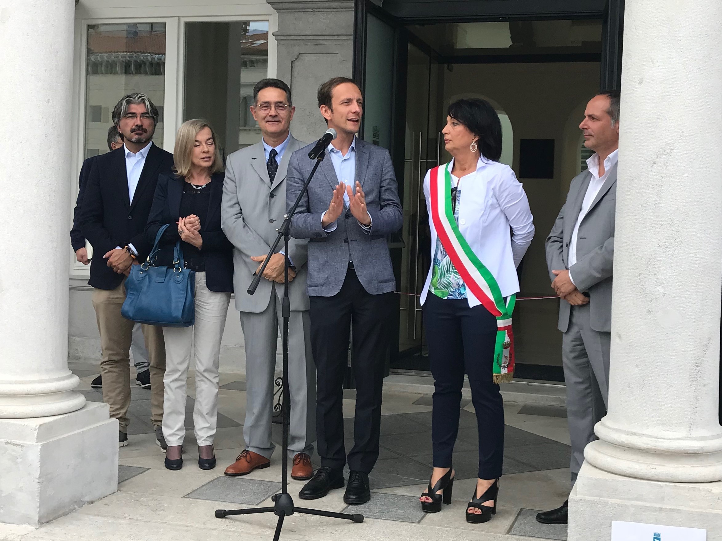 Monfalcone (Go), 5 maggio - Il nuovo municipio di Monfalcone ha fatto questa mattina da sfondo al primo intervento istituzionale del Governatore del Friuli Venezia Giulia, Massimiliano Fedriga, che partecipando a fianco del sindaco Anna Maria Cisint al taglio del nastro della struttura (oggetto di una ristrutturazione completa in seguito a problemi strutturali) ha rimarcato la centralità del tema occupazionale per la Regione.