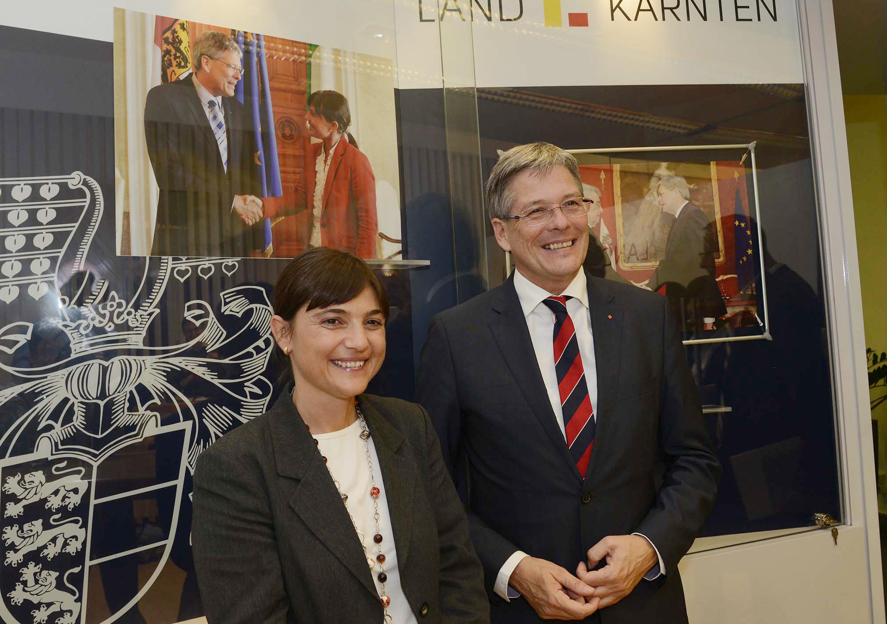 Klagenfurt, 31 ott - Ambiente, cultura, turismo e trasporti sono i campi in cui più proficuamente potranno trovare ulteriore sviluppo i già buoni rapporti di collaborazione tra Friuli Venezia Giulia e Carinzia, ''cogliendo nuove occasioni ed opportunità di cooperazione, anche nella nuova cornice dell'Euroregione Senza Confini''. Lo hanno sottolineato oggi a Klagenfurt la presidente del Friuli Venezia Giulia Debora Serracchiani ed il governatore della Carinzia Peter Kaiser al termine del loro secondo vertice bilaterale, dopo quello di fine giugno a Trieste. Alla riunione, alla quale hanno partecipato anche l'assessore alla Protezione civile ed al Coordinamento delle Riforme del Friuli Venezia Giulia Paolo Panontin e l'assessore carinziano all'Economia, al Turismo e alla Cultura Wolfgang Waldner, è stata in particolare ribadita la comune volontà di proseguire, assicurando i necessari finanziamenti, il collegamento ferroviario transfrontaliero (progetto ''Micotra'') tra Udine e Klagenfurt, ''impegnandoci anche nella ricerca di risorse europee per concretizzare un programma su più anni'', ha sottolineato Serracchiani. Tra gli argomenti al centro della discussione inoltre lo sviluppo turistico per Pramollo/Nassfeld che, ha ricordato la presidente del Friuli Venezia Giulia, a fine agosto è stato riconosciuto dalla Giunta regionale di ''pubblico interesse'', dando così di fatto l'avvio all'opera: ''proseguiamo dunque nell'impegno - ha indicato Serracchiani - confermando comunque l'esigenza di accompagnare lo sviluppo di Pramollo con una progetto turistico a carattere transfrontaliero, allo scopo di favorire l'arrivo di nuovi flussi turistici nell'area''. Per Friuli Venezia Giulia e Carinzia di sicuro interesse è poi il settore dell'istruzione, incrementando cooperazioni già a suo tempo avviate, come la rete ''Drei-Tre-Tri'' per uno sviluppo ''più ambizioso'', ha osservato Serracchiani, del plurilinguismo (italiano, tedesco, sloveno) nelle comuni aree di confine; nella cittadina di Noetsch, ha ricordato il presidente Kaiser, già è in funzione una scuola elementare con le tre lingue d'insegnamento. È stata inoltre ribadita la volontà di un coinvolgimento delle due realtà regionali in alcune progettualità legate alla Grande Guerra (in questo contesto Serracchiani ha proposto di estendere alla Carinzia la costituenda rete FVG tra i grandi Festival che animano il Friuli Venezia Giulia), nonché di promuovere la collaborazione tra alcune iniziative a carattere sportivo, in particolare legate al golf ed al ciclismo, sfruttando ad esempio l'arrivo in regione, nel 2014, di due tappe del Giro d'Italia. Infine l'assessore Panontin, ringraziando nuovamente in modo ufficiale la Carinzia per l'intervento della struttura di Protezione civile carinziana in occasione dei disastrosi incendi che hanno colpito l'area del Montasio negli scorsi mesi estivi, ha ribadito la necessità di rafforzare, ancora di più, gli strumenti di cooperazione tra i due sistemi regionali di protezione civile. ARC/RM